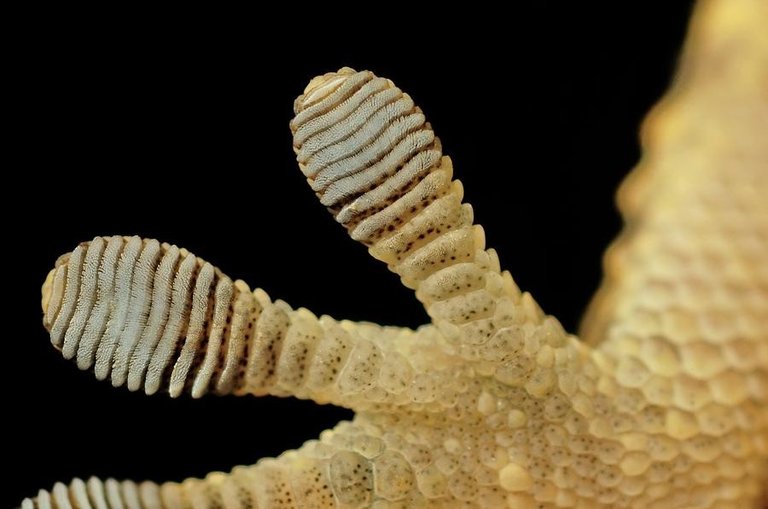 Gecko lizards have hundreds of thousands of hairs called 'Seta' on their feet. Each set is about 1 mm long and 5 μm in diameter. 'Seta' 'are covered by hairs that are 200nm in length and smaller than 10nm in diameter. "1" These hairs are 10 times more intact than human hair and appear to be bifurcated and further tapered under the microscope. The tips of these hairs are so incredible that they interact with the surface of the lizard at the molecular level