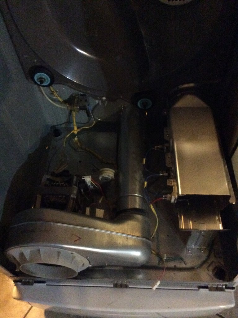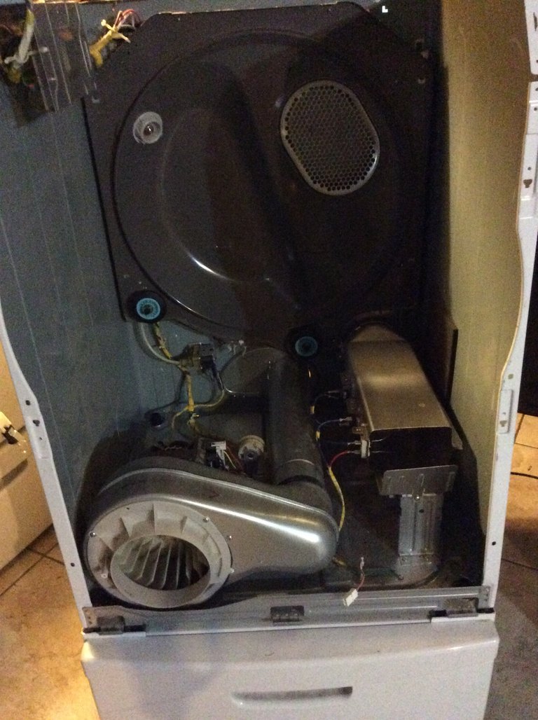 The dryers inside was covered in dust. My husband vacuumed out the dryer and I washed down all the pieces. When I put the dryer back together again it was as if it was new.