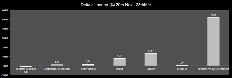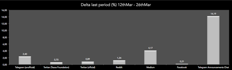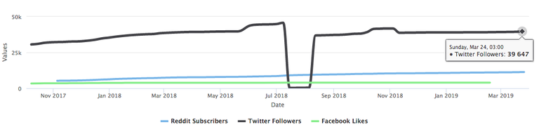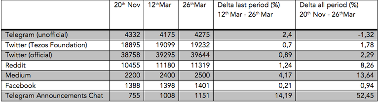 The graph above shows the dynamics of changes in the number of Tezos Facebook likes, Reddit subscribers and Twitter followers.