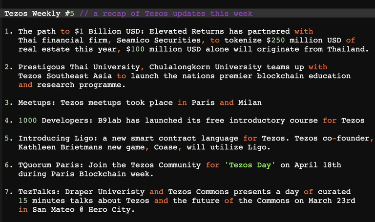 - Tezos Weekly #5 — a recap of updates, events, and news this week in the #tezos universe.