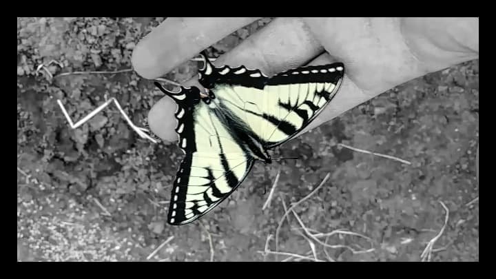 I was working in the pen with the recently passed mom and her calf. The farmer's wife brought this butterfly to my attention, and we were talking about how it was potentially wet.