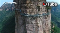 Glass Skywalk opens in China:-The skywalk is built 1180 metres above sea level and it 226 metres long and only two metres wide. A newly-opened glass skywalk in the East Taihang Scenic Area in China offers tourists a chance to get a stunning or terrifying experience.