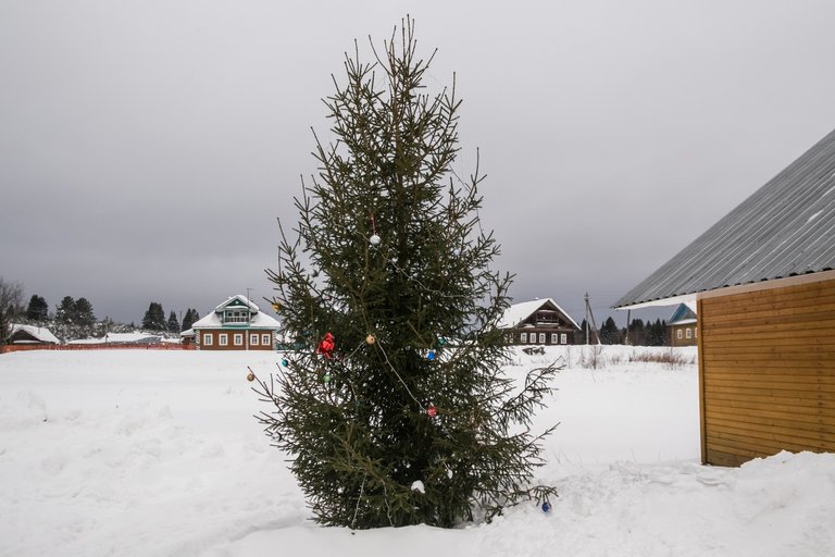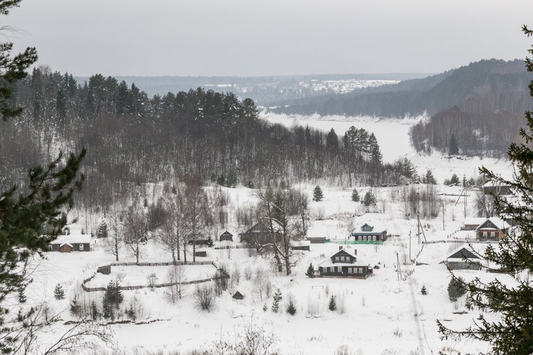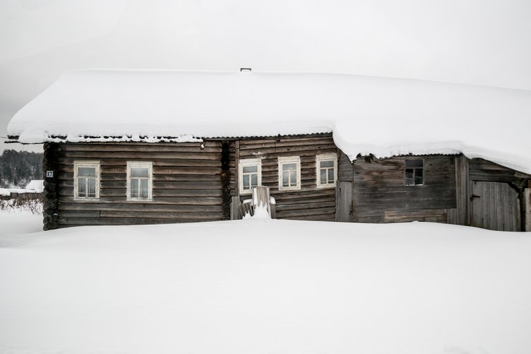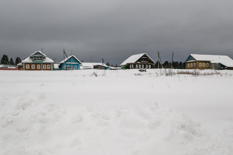 The village stands on the very bank of the Sukhona River, and during floods, water can reach the houses.
