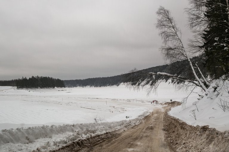 In Lodeyka in winter there is a road to such monuments of nature as Cape Bull, a flowing fountain, the Opoki, and also a road to the village of Lomovatka.