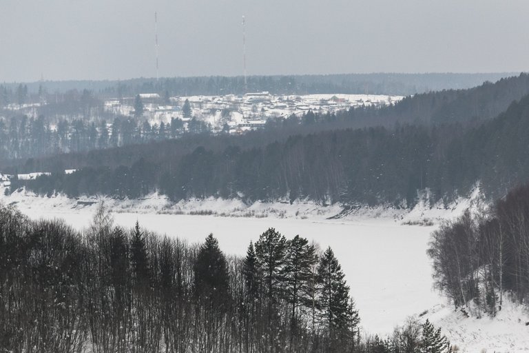 From the high bank of Sukhona, the village of Porog is visible.