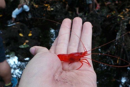 The existence of such red shrimp in the lake Koguna Beach is a natural phenomenon that is rarely found in other places that need to be preserved. Not yet known what caused the striking red color on this red shrimp. The species name or scientific name of this shrimp was we do not know yet. However, this beautiful shrimp potential for breeding and used as ornamental shrimp in the aquarium.