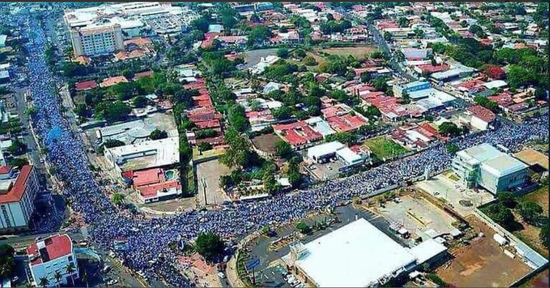 In commemoration of the 19th day of protest in Nicaragua the students , the civil society just with the help of the social media organized another enormous march to show the disagreement to the actual government response against our peaceful protest. They used paramilitary groups called the sandinist youth to attack , steal and killed the citizens. But instead of scaring the people as they started to kill our citizens more people join the protest. al over the country.