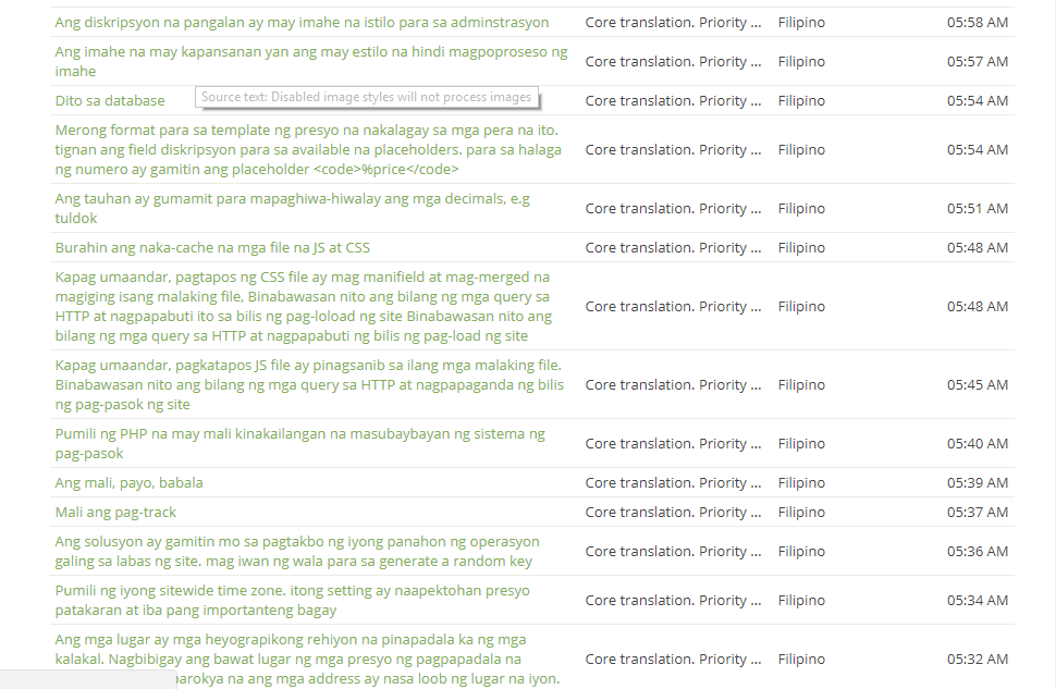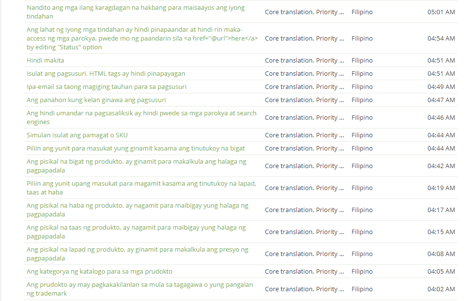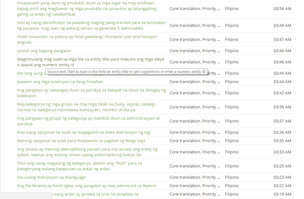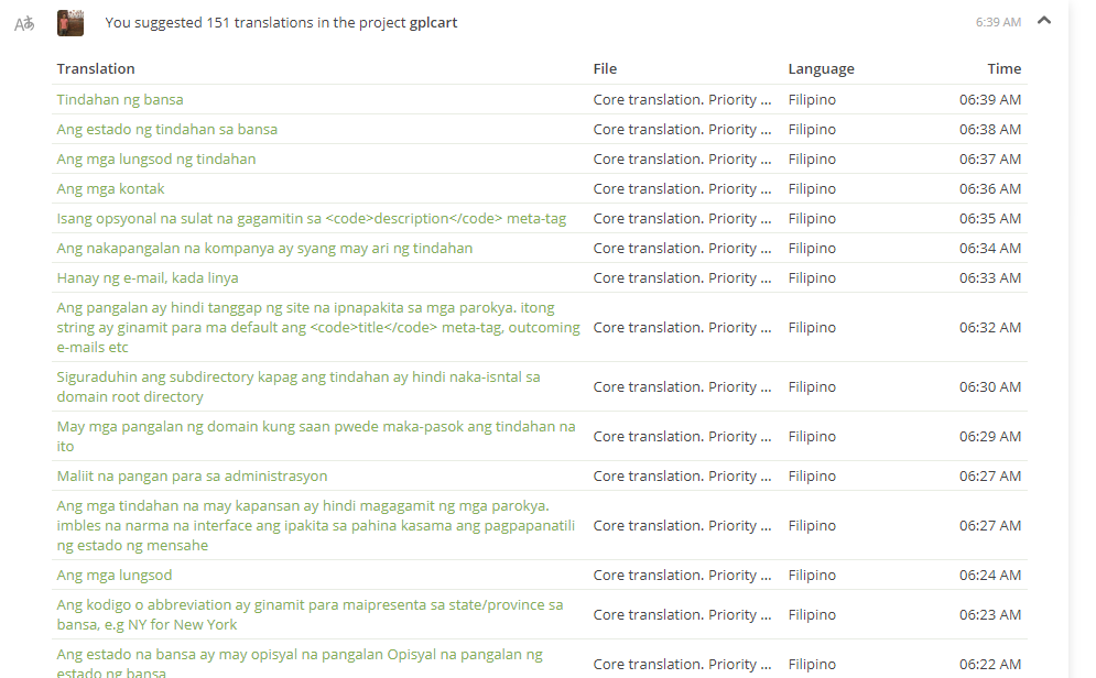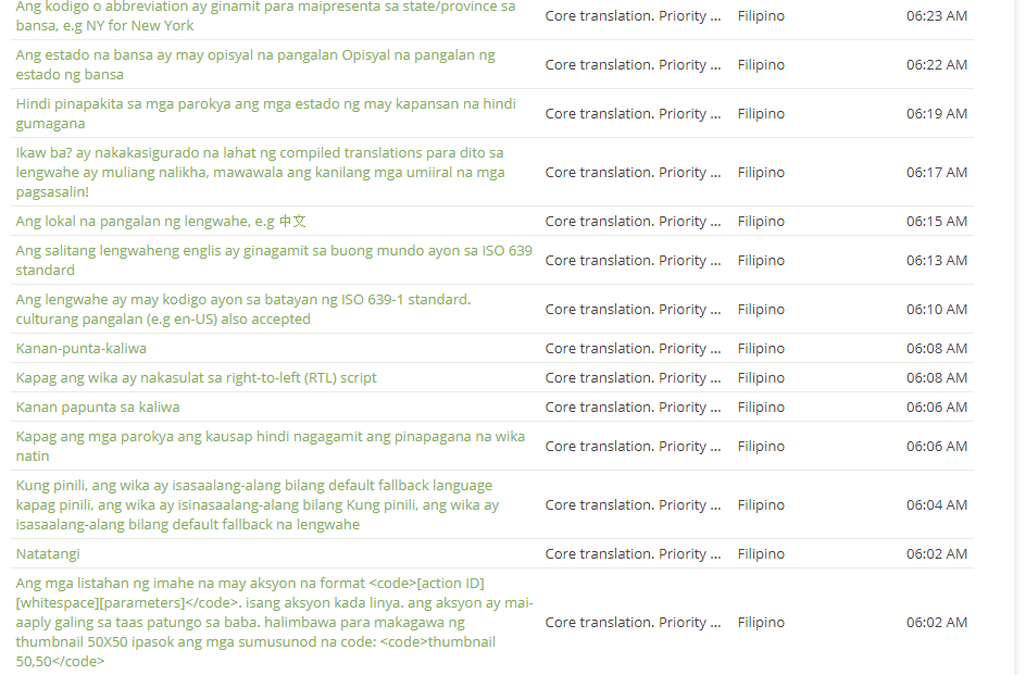 "Core translation. Priority #1" from 3,399(52%) to 4,514(69%). I started translating 03:08pm up to 08:30pm in Philippine Standard Time.