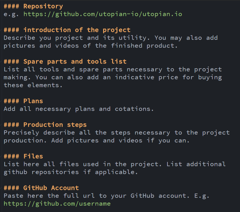 As we usually do for submitting work for Utopian, makers would use a #maker tag, using a specific template. This one could be as follow :