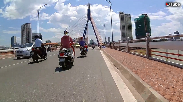 Vietnam safe cycling. Driving in Vietnam. Da Nang night driving.