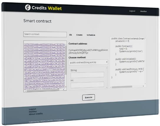 Credits is the basic software that allows its users to apply blockchain in business and IT solutions through the use of autonomous smart contracts for creating and storing data about transactions and operations throughout the network.