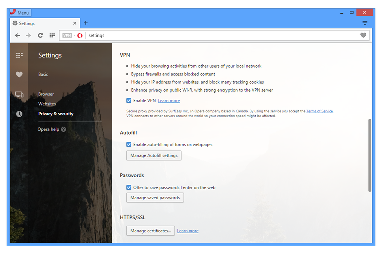 The Opera browser maker to integrate an unlimited and free VPN or virtual private network. Now, you don’t have to download VPN extensions or pay for VPN subscriptions to access blocked websites and to shield your browsing when on public Wi-Fi.