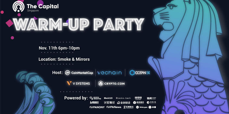The CoinMarketCap Global Conference on November 12–13 is coming in less than 4 days! To get everyone ready for the conference, V SYSTEMS will co-host a Warm-up Party with OceanEx, Vechain, Crypto.com and CoinMarketCap on 11th November 2019, 6pm — 10pm. Please come join us at Smoke & Mirrors and meet our team. Tickets are limited, sign up now!