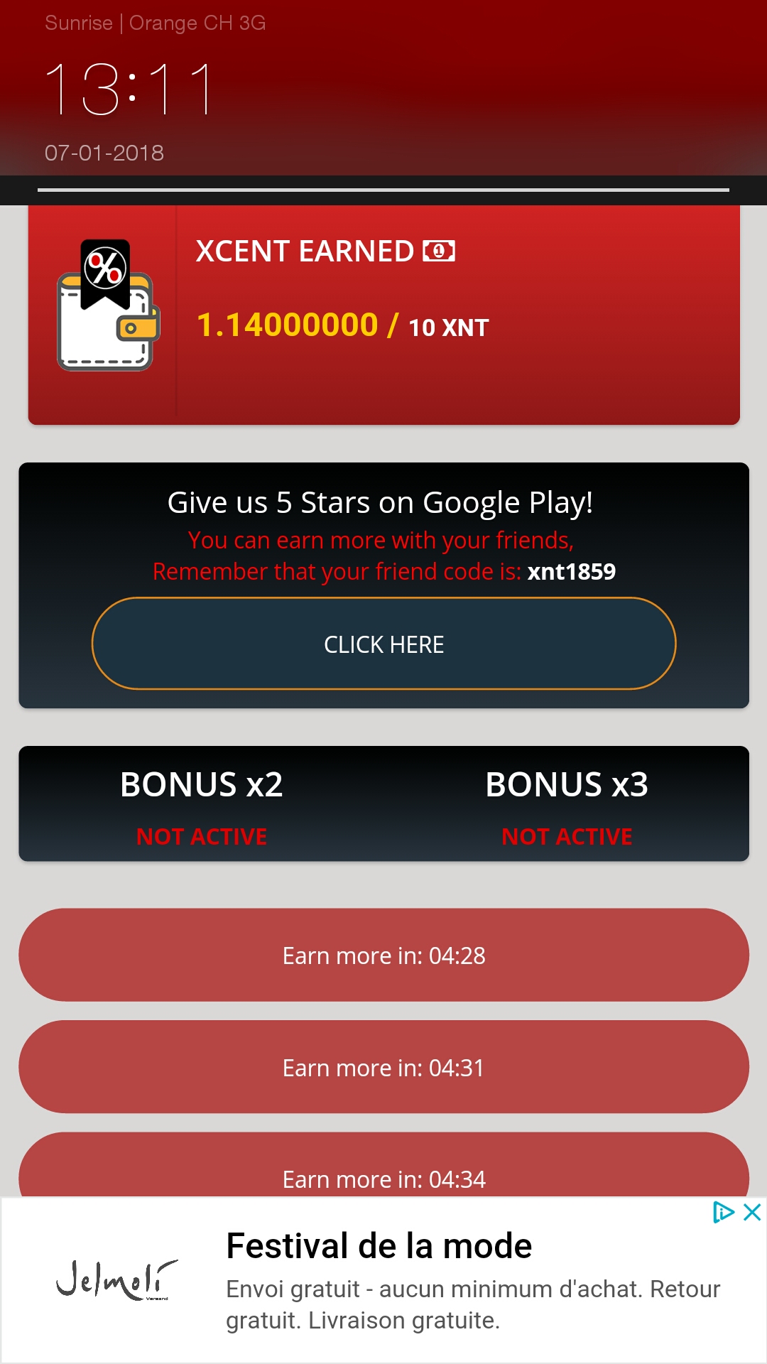 XCENT Reward - Earn free XNT - Apps on Google Play ( Wallet mining at the bottom of this page)