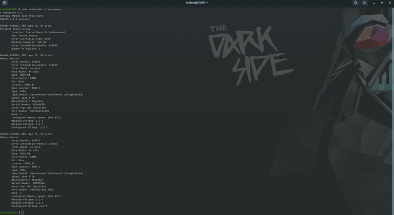I found a command that gave me all the necessary information and much more. The information we will see when typing this command will be very detailed, from the amount of memory slots that the PC has available, speed, latency, type and many more things.