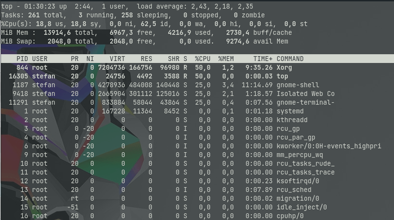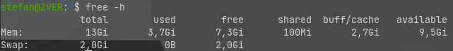 As you can see this command shows us the RAM we currently have in the computer how much is occupied and how much is free and also shows us information about the state of the Swap.