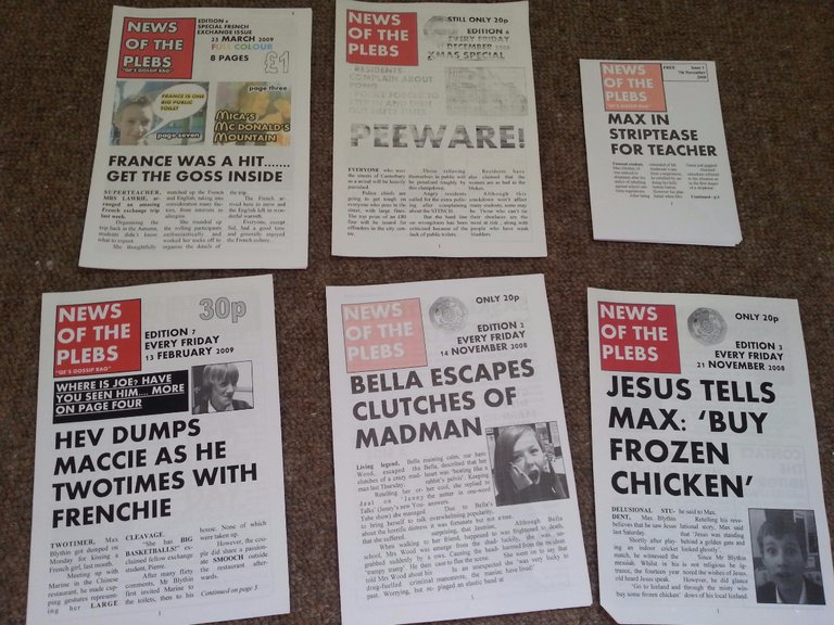 I created another school newspaper at secondary school - "News of The Plebs" which blew away my classmates. I was the king of gossip. I wrote about romantic liasons, teachers being sacked and it all stopped when I announced one girl was pregnant and wanted an abortion.
