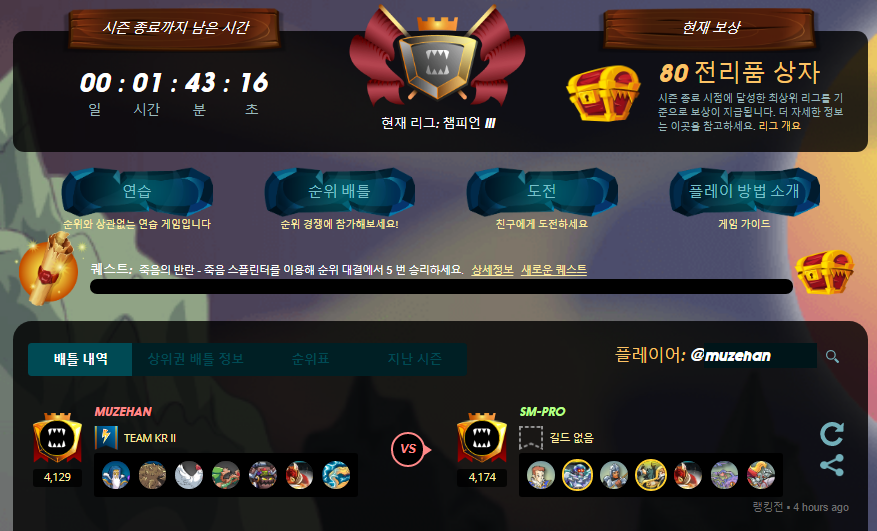 이번에도 챔피언2 리그로 끝냈기 때문에 시즌 보상에 많은 기대가 됩니다.