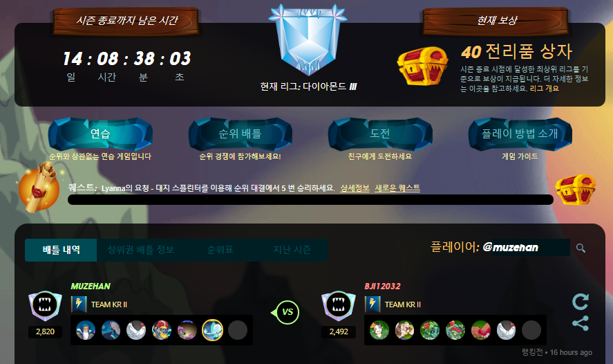 새 시즌이 시작되고 다이아3 리그에서 시작합니다.