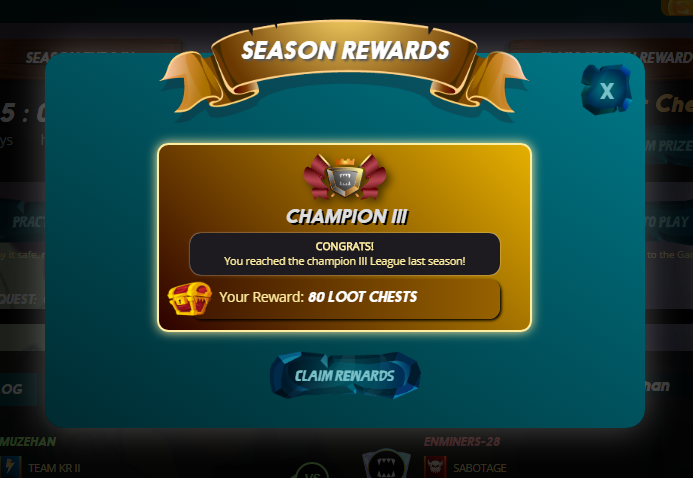 어쨌든 나름 상위 리그라서 보상 상자가 무려 80개나 됩니다.
