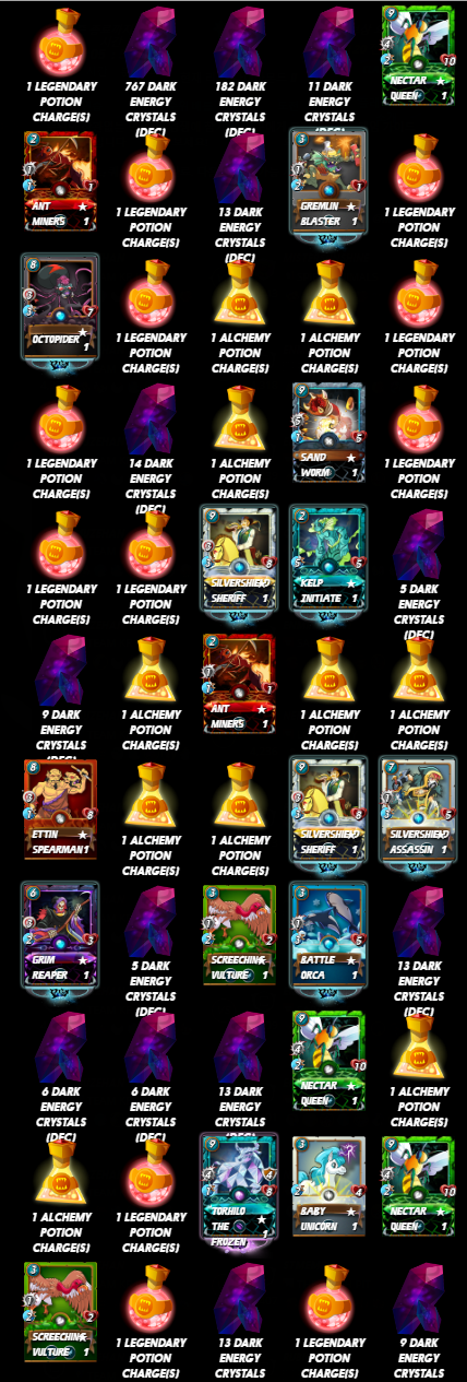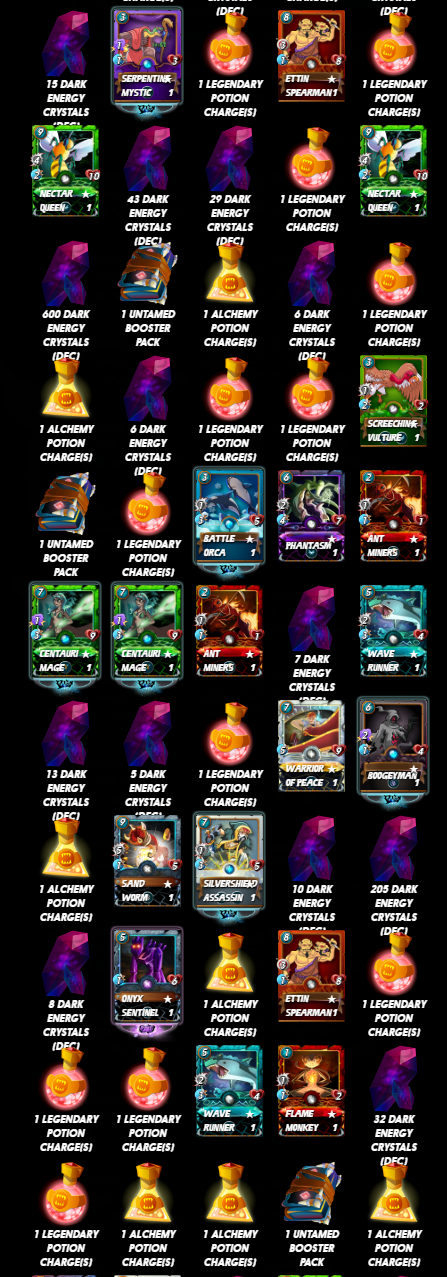 그때는 카드만 나왔으니 120개의 보상을 받으면 그중에 레젼드나 골드카드 한둘쯤은 있는게 당연한 시절이었지만, 지금은 물약과 DEC 라는 꽝이 포함되어 있기 때문에 크게 도움이 되지는 않습니다.