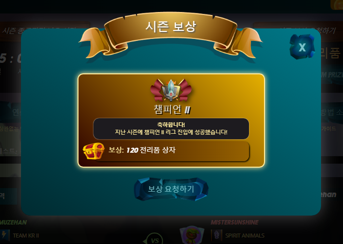 이번 시즌은 "챔피언 2" 리그에 도달했습니다.