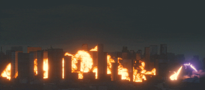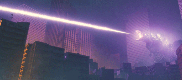 중반까지 그냥 묵묵히 걷기만하던 고질라가 후반부에 인간의 저항에 부딛치자, 드디어 멋진 불을 뿜으며 도시를 불태우는데 ... 고질라 팬의 가슴에도 불을 확지른다.